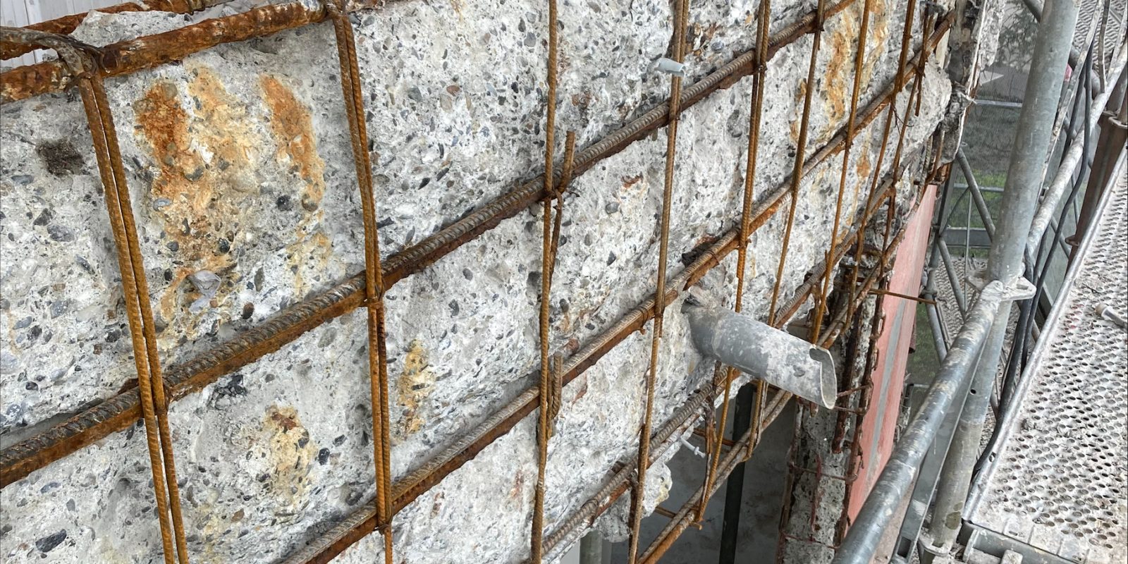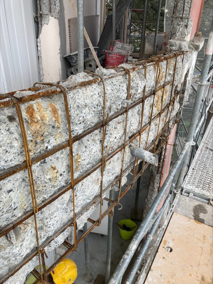 Chantier de traitement électrochimique par anodes galvaniques des structures béton des balcons